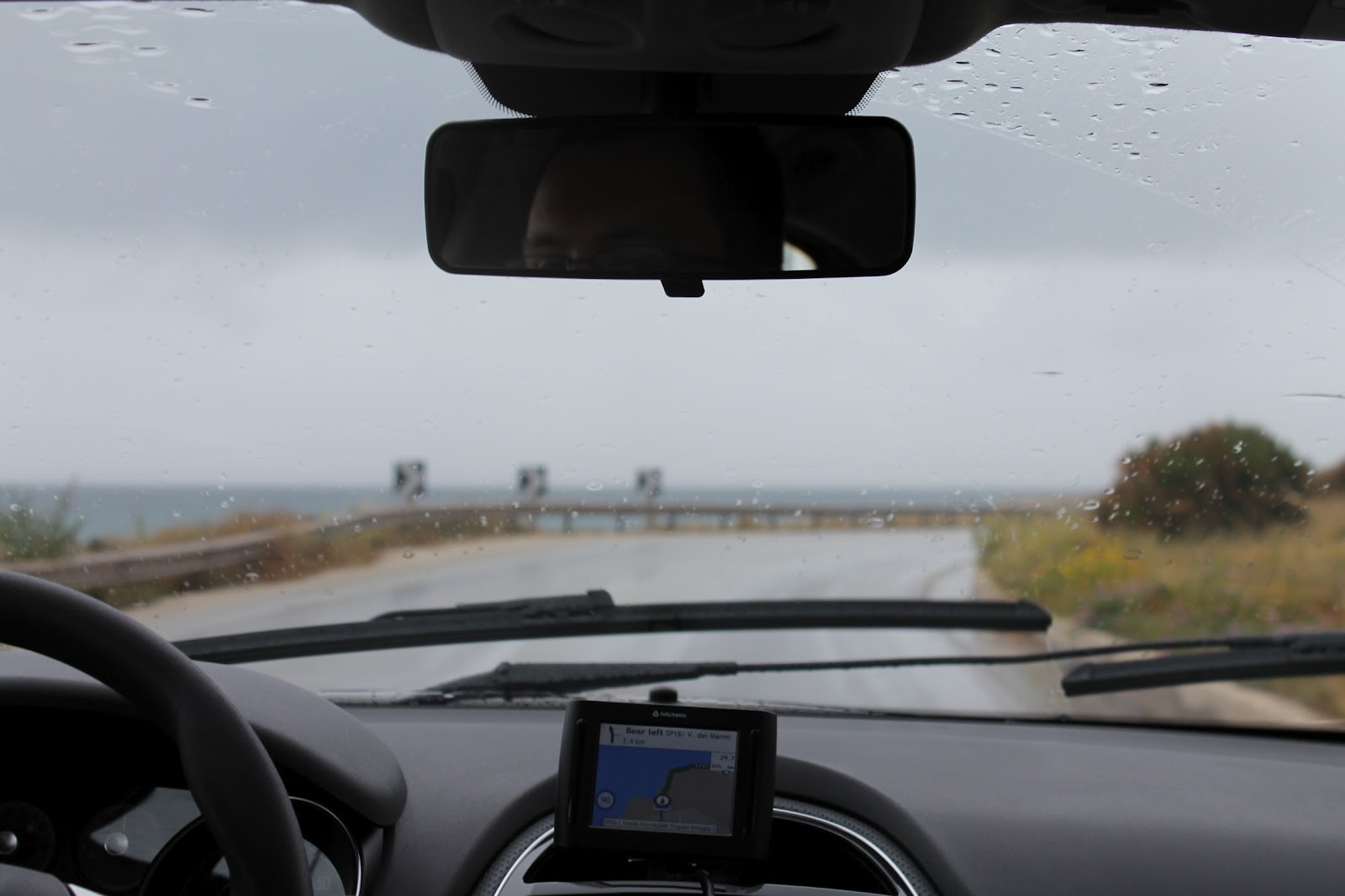 Onsdag, dag 4. Första dagen med hyrbil, ösregn. Destination San Vito lo Capo och Scopello. San Vito lo Capo är en turistigare strandort med jättefin strand och vatten. Åt jättegod lunch med grönsaks antipaston och busiata trapanese. Barnen åt franskisar. Körde sen till Scopello dom är en liten, liten by när vackra vattenlandskap. Var jättefint där. Barnen sov turvist i bilen.